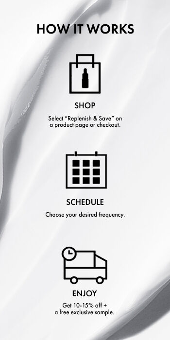 REPLENISH & SAVE Sign up for our auto-replenishment program and save on your favorite skincare! REPLENISH & SAVE Sign up for our auto-replenishment program and save on your favorite skincare!